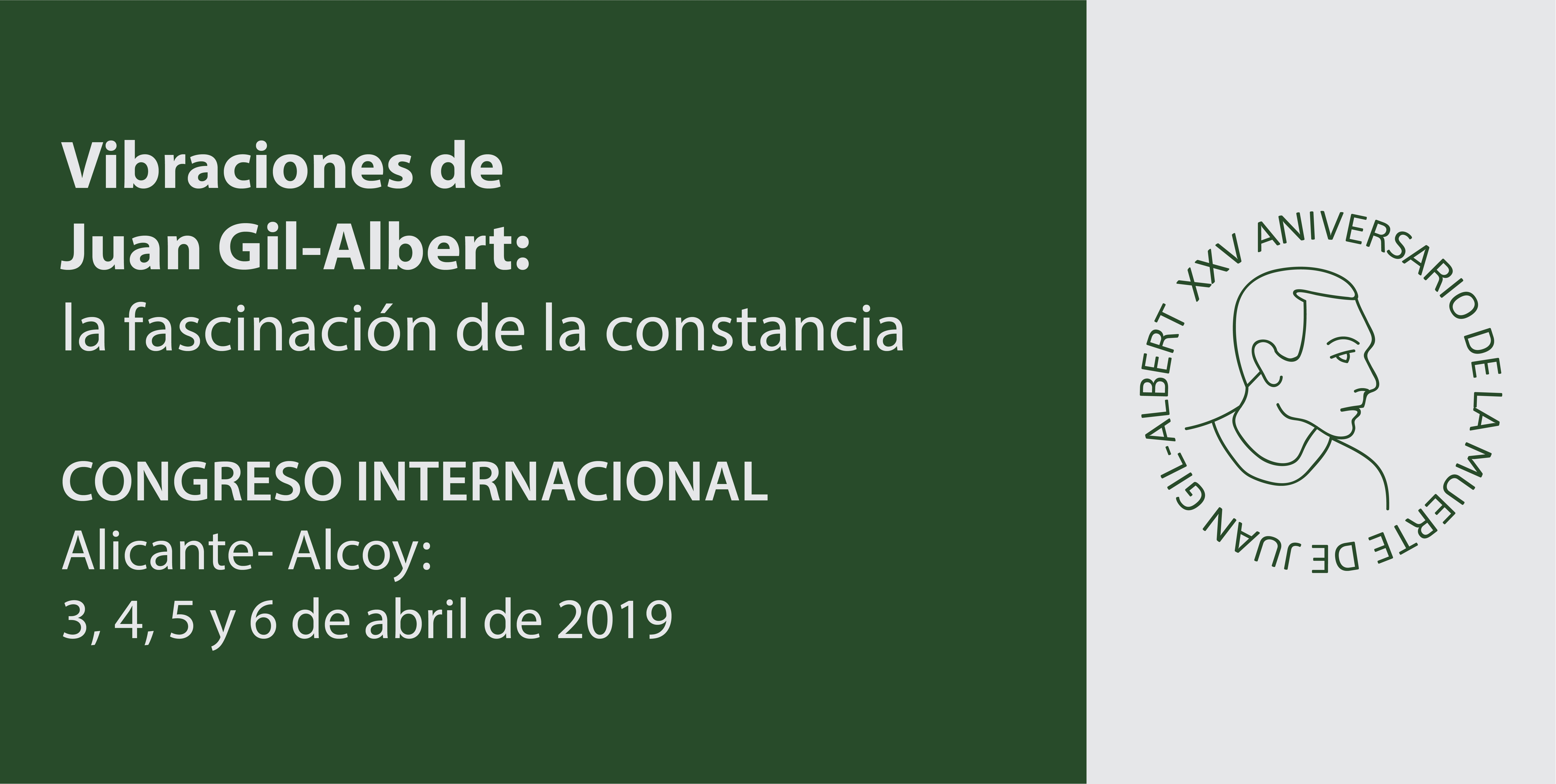 El Congreso internacional “Vibraciones de Juan Gil-Albert: la fascinación de la constancia” organizado por el IAC Juan Gil-Albert y la Universidad de Alicante a través de su Centro de Estudios Literarios Iberoamericanos Mario Benedetti, arranca el 3 de abril con una conferencia del escritor Luis Antonio de Villena como punto de partida de cuatro días en Alicante y Alcoy, cuyo ayuntamiento también colabora. Dieciocho ponencias y veintiuna comunicaciones componen un amplio programa en el que la literatura del autor alcoyano será sometida a debate, incluyéndose actividades como el estreno de una composición musical, la proyección de la película Valentín y de un documental, y una lectura de poemas.