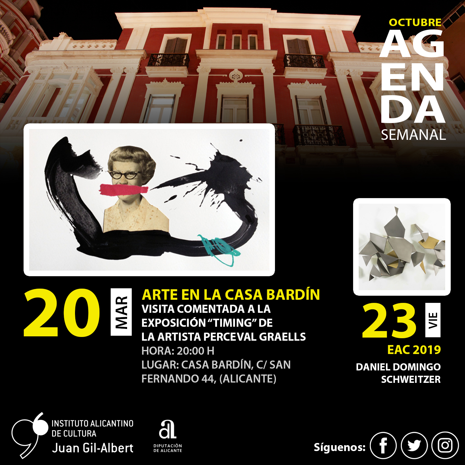 El acto tendrá lugar el martes 20 de octubre de 2020 a las 20:00 h en la Casa Bardín, C/ San Fernando, 44 (Alicante).