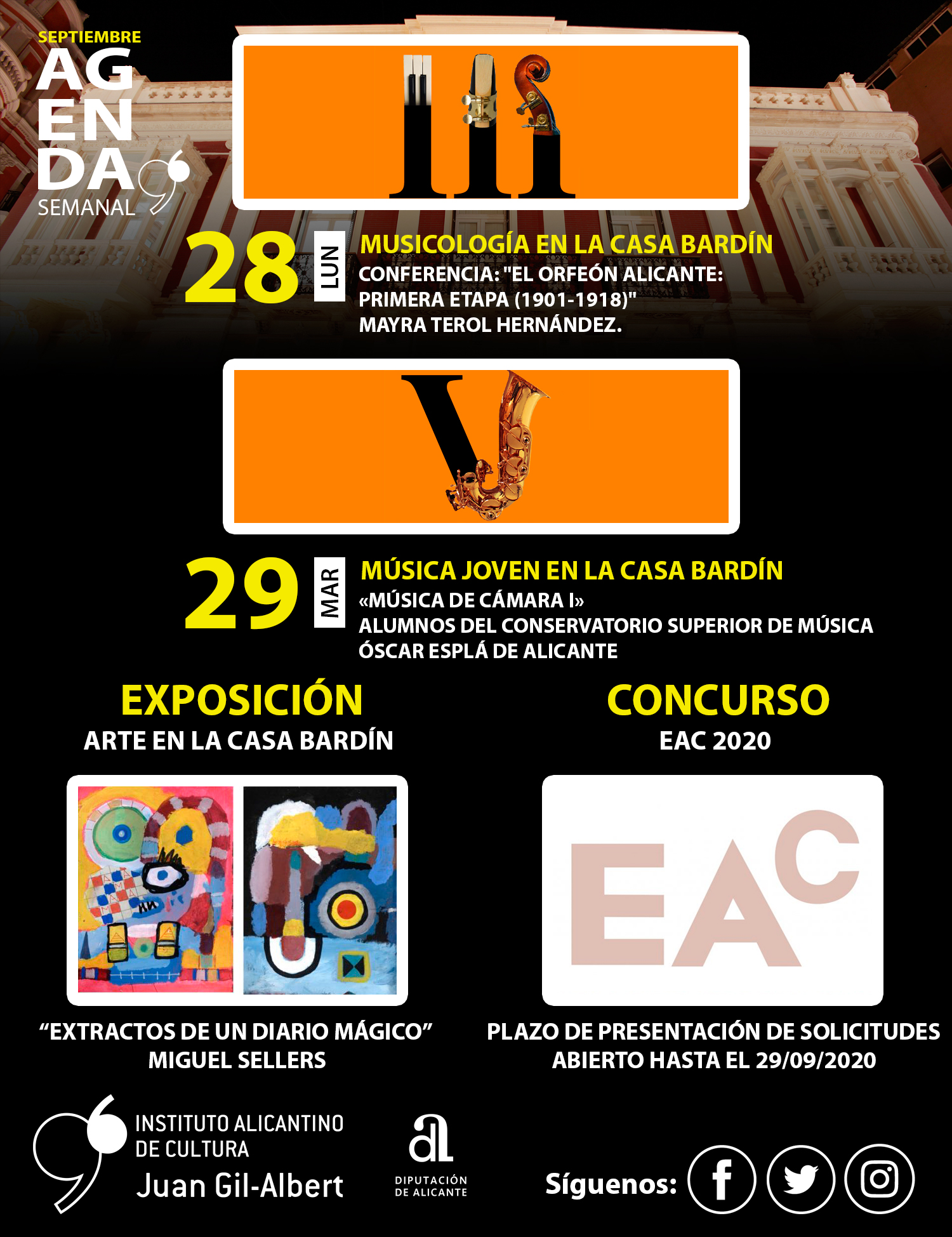El martes 29 de septiembre a las 19:00 horas se llevará a cabo una audición interpretada por alumnos del Conservatorio Superior de Música Óscar ESplá de Alicante
