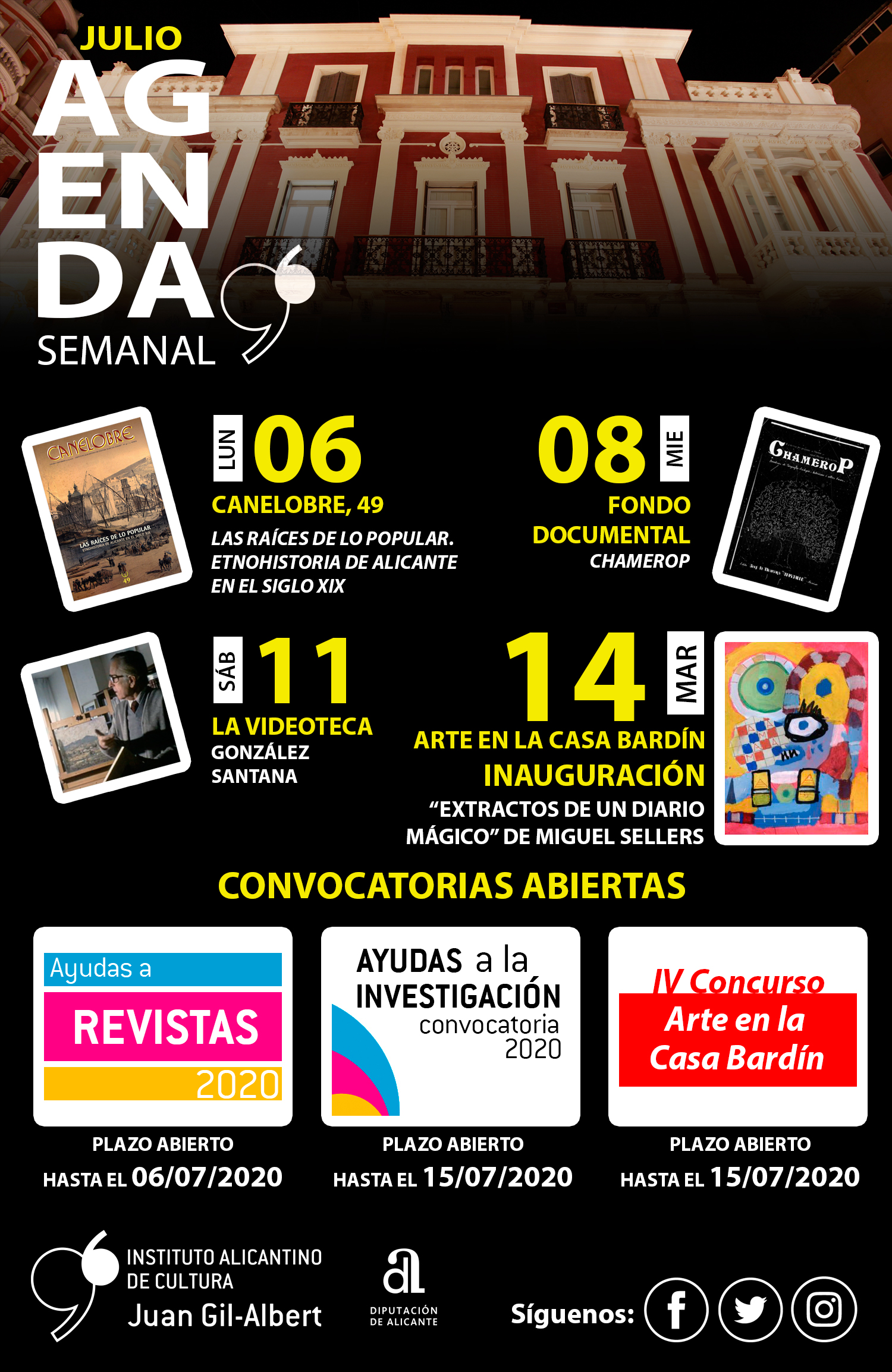 Ayudas a Revistas: el objetivo de estas ayudas es apoyar la difusión cultural realizada por Entidades culturales sin ánimo de lucro, que publiquen, en la provincia de Alicante y fuera del ámbito universitario, revistas impresas de investigación de probado interés dentro de los campos de las humanidades y las ciencias sociales, que contribuyan al enriquecimiento del patrimonio bibliográfico alicantino, escritas en castellano y/o valenciano, lenguas cooficiales de la Comunidad Valenciana ya sean de contenido provincial, comarcal o local.