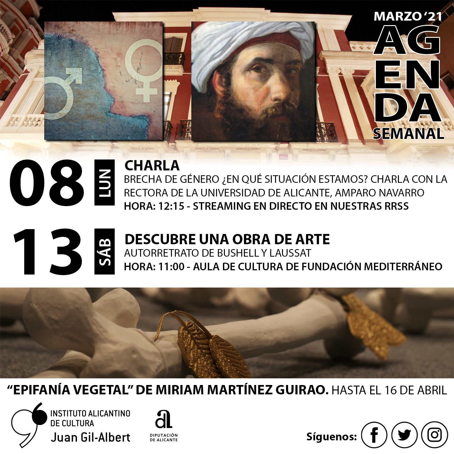 El Instituto Alicantino de Cultura Juan Gil-Albert de la Diputación de Alicante ha organizado este año un encuentro virtual para conmemorar el Día Internacional de la Mujer en el que intervendrá como principal invitada la rectora de la Universidad de Alicante, Amparo Navarro. La convocatoria telemática, que será inaugurada por la vicepresidenta y diputada de Cultura, Julia Parra, tendrá lugar el lunes, día 8 de marzo, a las 12:15 horas.