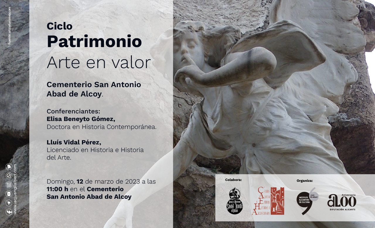 11-03-23.- La nueva sesión del ciclo ‘Patrimonio. Arte en Valor’ del Instituto Alicantino de Cultura Juan Gil-Albert se desplazará el domingo al cementerio San Antonio Abad de Alcoy donde se llevará a cabo una visita guiada teatralizada. Además, la programación del fin de semana incluye también una mesa redonda sobre fotografía en El Campello y un recital literario para el público infantil en Elche.