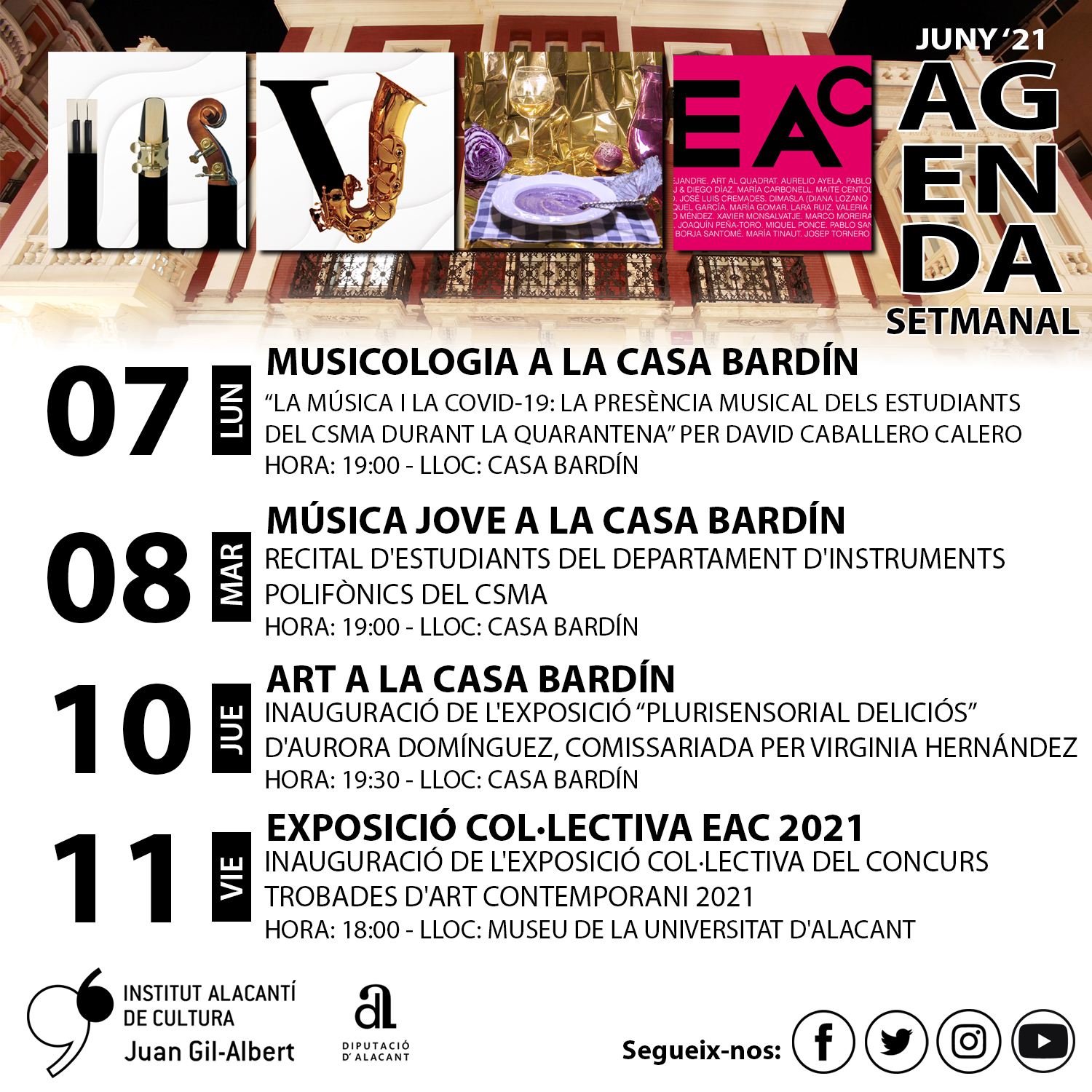 Amb el mateix propòsit que inspira el cicle “Música jove a la Casa Bardín” de donar protagonisme a la joventut en el camp de la música, es dona continuïtat a aquest cicle en el qual participen estudiants i/o exalumnes del Conservatori Superior de Música Óscar Esplá d’Alacant del departament de Musicologia. Es desitja amb aquesta iniciativa que disposen d’un espai públic, amb assistència oberta, on puguen exposar les seues troballes i conclusions com a activitat afegida i millora de la seua formació acadèmica, a més de servir d’estímul en la seua projecció cultural.