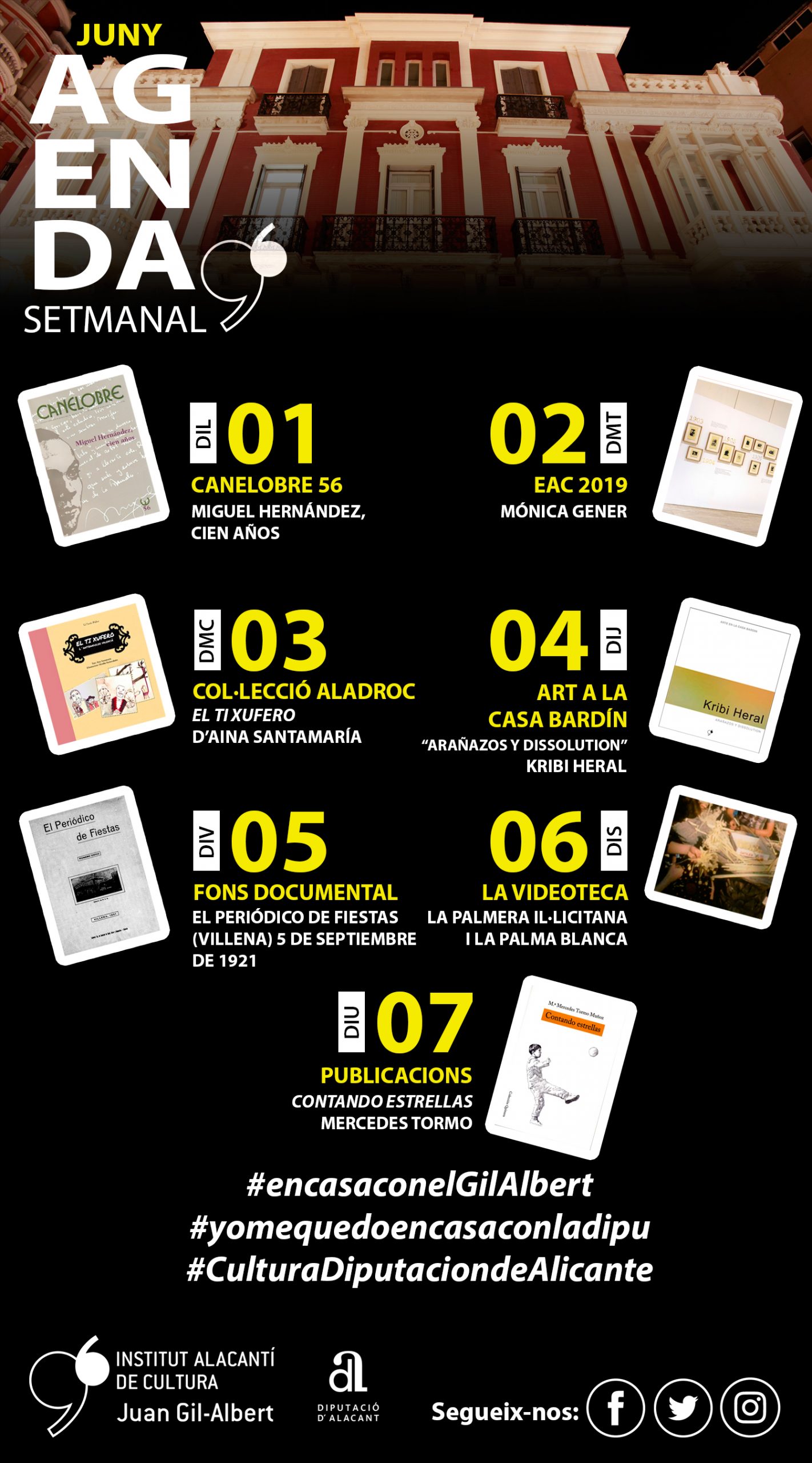 El següent contingut estarà disponible en les nostres xarxes socials, Facebook, Twitter i Instagram els dies indicats.