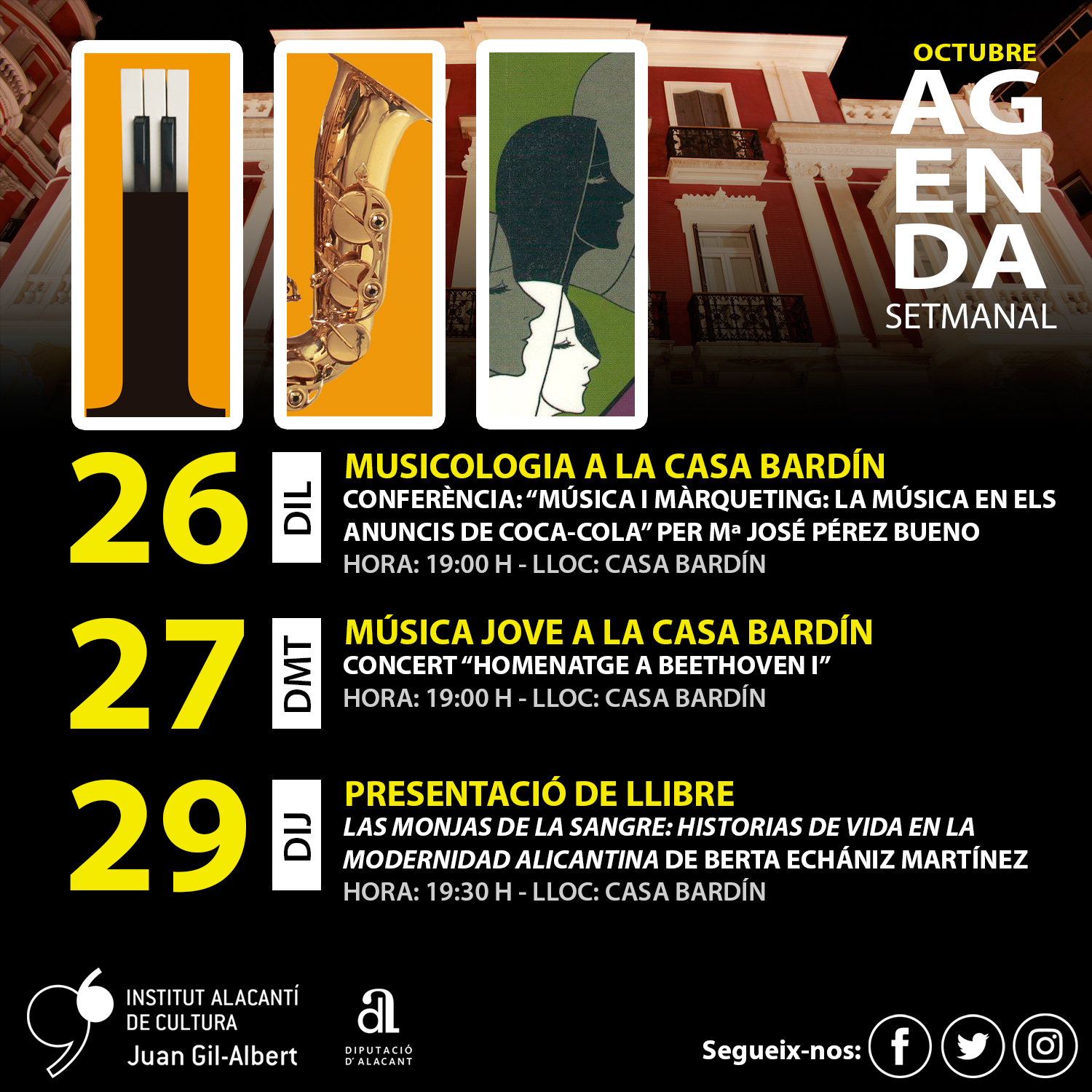El acto tendrá lugar el martes 27 de octubre de 2020 a las 19:00 en la Casa Bardín, C/ San Fernando 44, Alicante.
