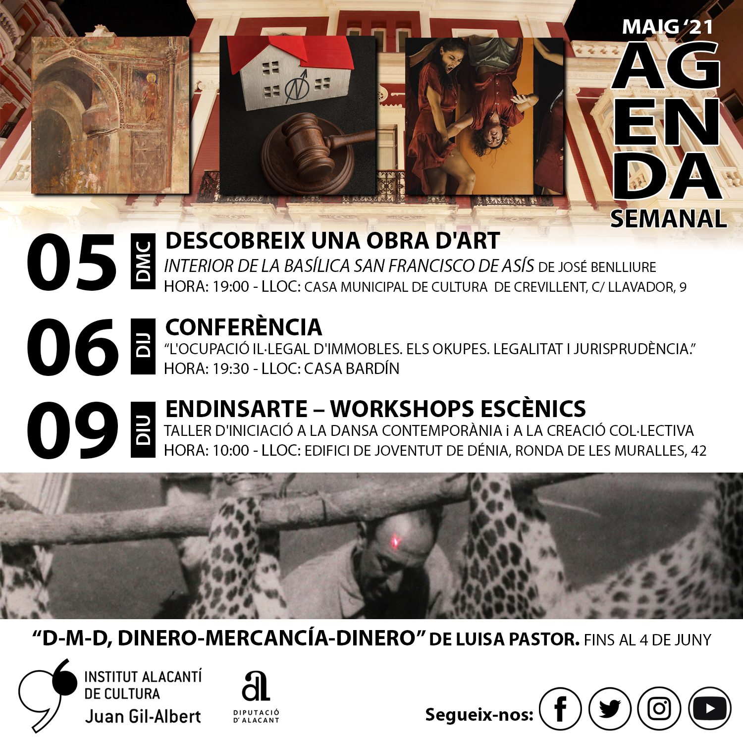 Aquesta iniciativa, en la línia del consolidat cicle “Descobreix una obra d’art”, pretén al mateix temps descobrir i posar en valor el patrimoni alacantí. De la mà d’arquitectes, professors, historiadors o crítics d’art, i amb la presència d’una obra artística representativa de l’art. L’objectiu és descobrir l’obra in situ i així poder apreciar el seu valor artístic.