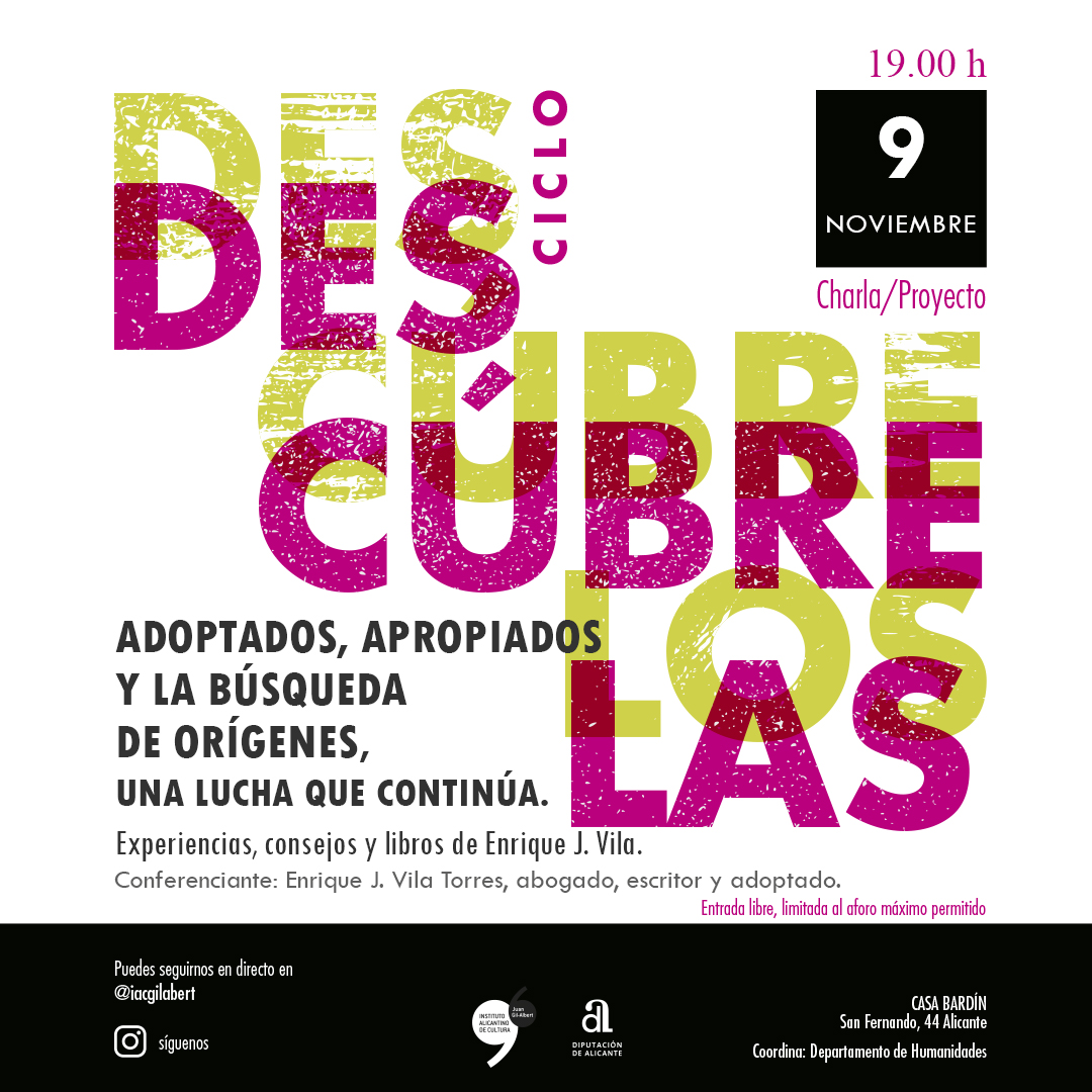 Dimarts 9, a les 19.00 h a la Casa Bardín – Cicle “Descobreix-los & Descobreix-les” – Adoptats i apropiats, i la cerca d’orígens. Una lluita que continua.