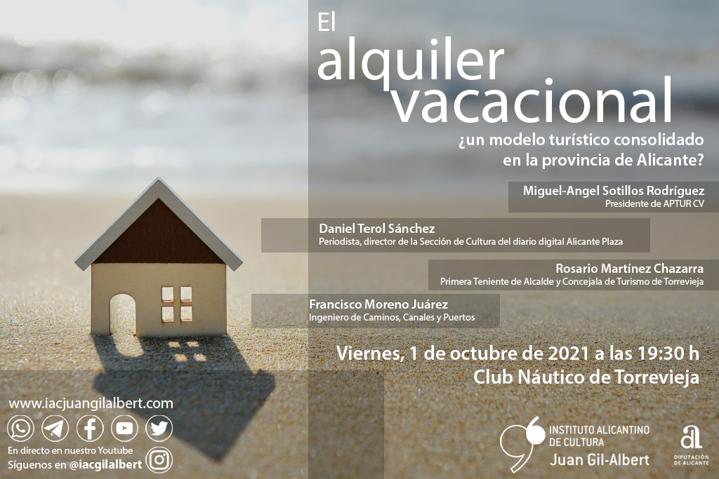 29-09-21.- El Instituto Alicantino de Cultura Juan Gil-Albert ha programado una charla coloquio sobre el modelo turístico de alquiler vacacional en la provincia. El acto, organizado por el departamento de Ciencias Jurídicas y Sociales del IAC tendrá lugar en el Club Náutico de Torrevieja el viernes 1 de octubre a las 19:30 horas.