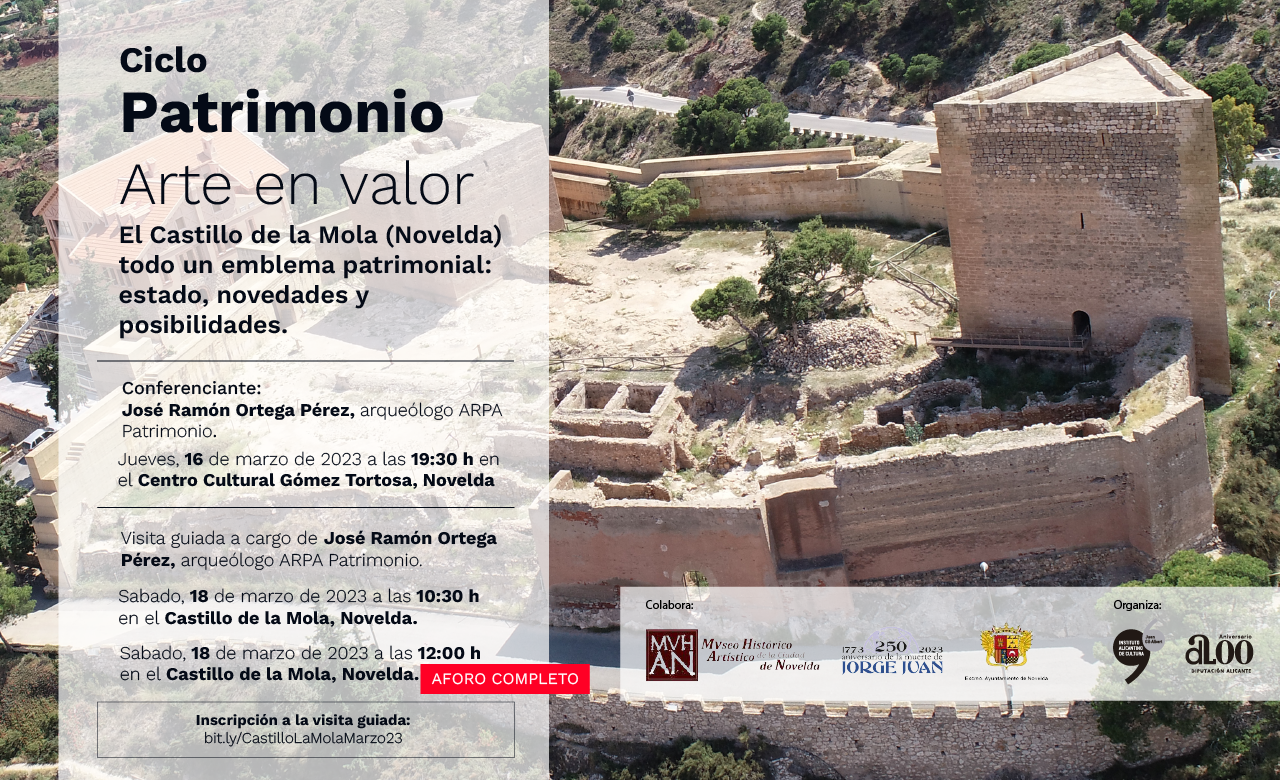 15-03-23.- El ciclo ‘Patrimonio. Arte en Valor’ del Instituto Alicantino de Cultura Juan Gil-Albert ha programado esta semana una doble sesión en Novelda para hablar sobre el Castillo de la Mola. El arqueólogo José Ramón Ortega impartirá una conferencia mañana y ofrecerá una visita guiada a la fortaleza el próximo sábado.