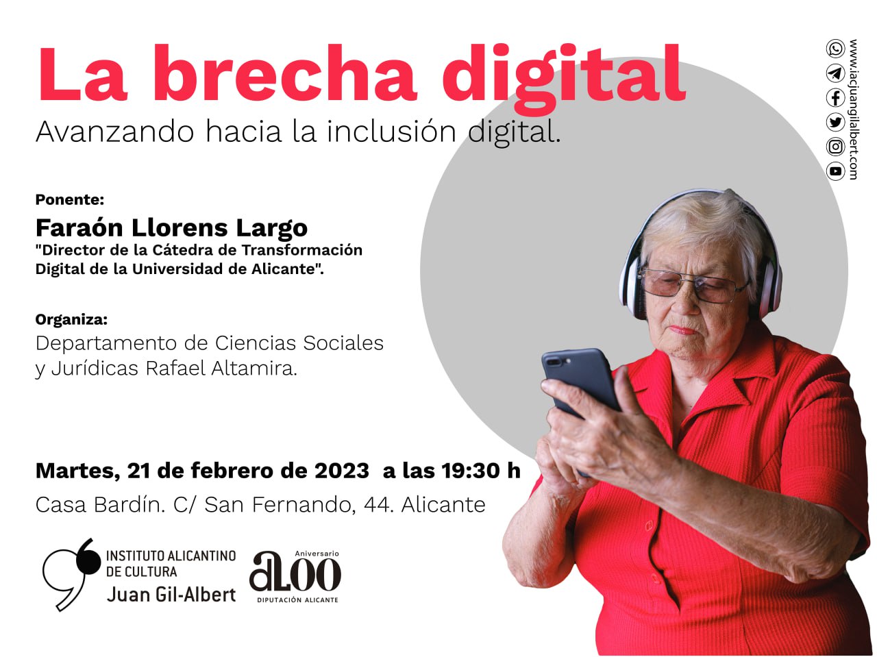 20-02-23.- El Instituto Alicantino de Cultura Juan Gil-Albert ha organizado una conferencia sobre la brecha digital causada por la evolución de las tecnologías. La Casa Bardín acogerá mañana esta propuesta que correrá a cargo del director de la cátedra de Transformación Digital de la Universidad de Alicante, Faraón Llorens.