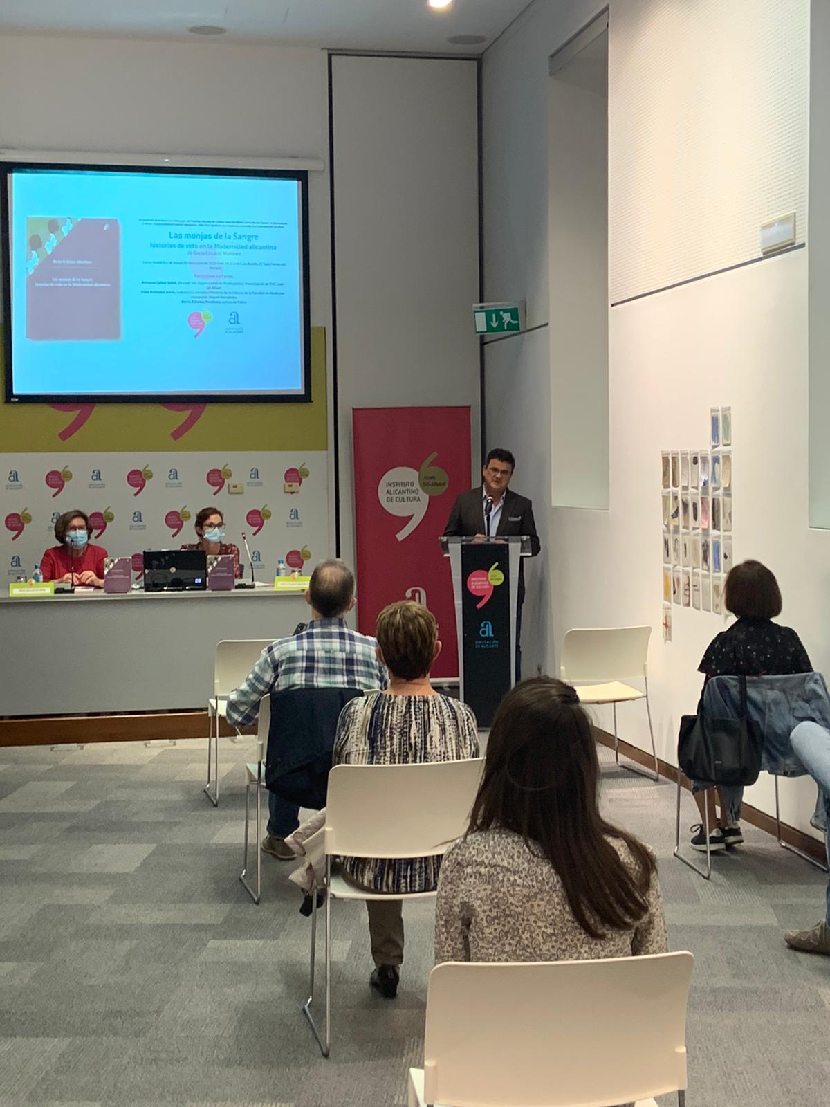 La historiadora alicantina Berta Echániz presentó el pasado jueves en el IAC Juan Gil-Albert el libro Las Monjas de la Sangre. Historias de vida en la Modernidad alicantina, una obra ampliamente documentada sobre la congregación religiosa instaurada en Alicante desde 1606. Echániz, acompañada durante la presentación de Rosa Ballester, catedrática emérita de Historia de la Ciencia de la facultad de Medicina de la UMH, el director del Dpto. de Publicaciones e Investigación, Toni Cabot, expuso su minucioso estudio, elaborado tras años de trabajo visitando todos los sábados el convento de las monjas que desde 2019 custodian la Santa Faz.